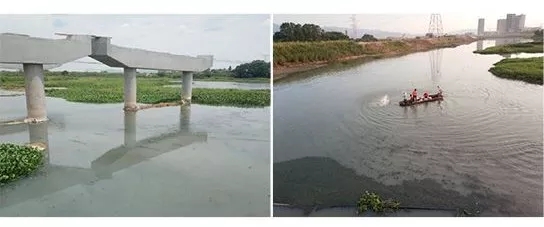 (微生物環(huán)保黑臭水體處理技術(shù)示范河道治理前后對比)