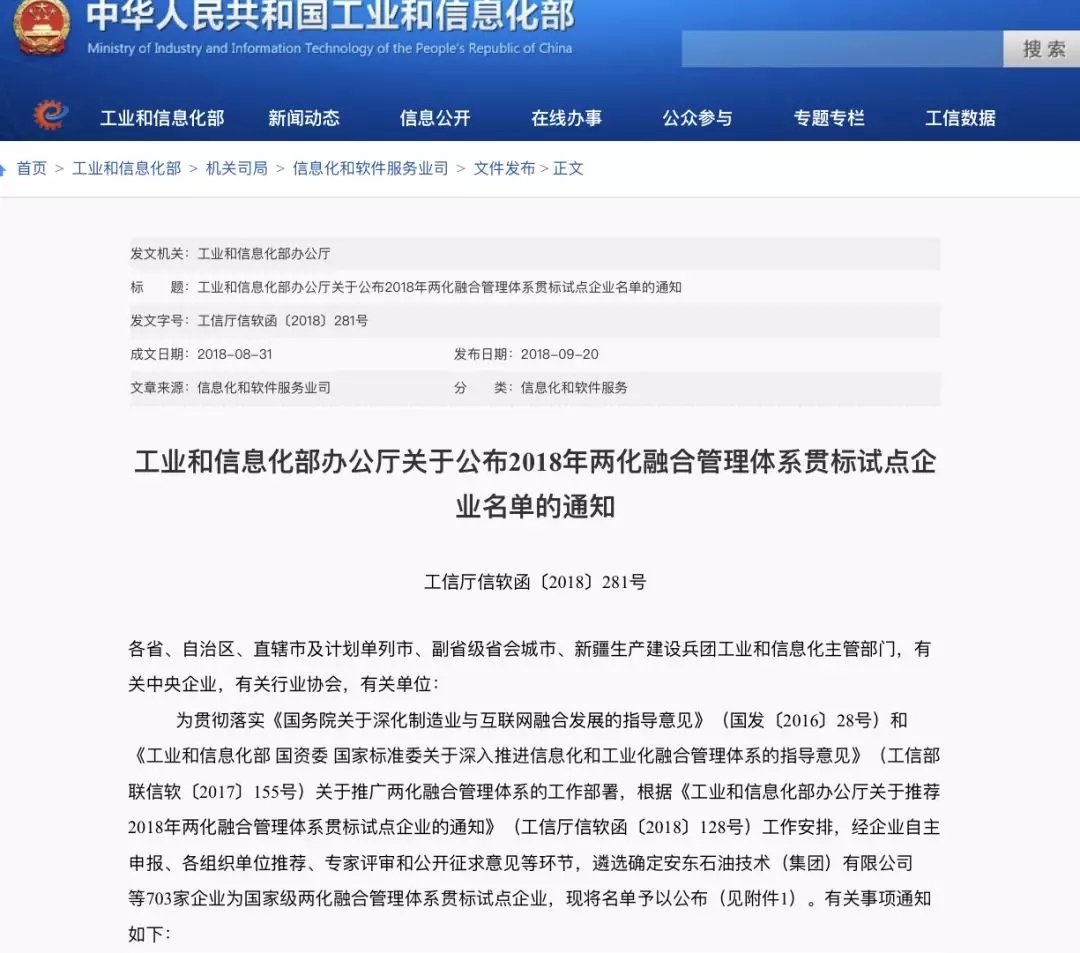 近日,國家工業(yè)和信息化部正式發(fā)出通告(工信廳信軟函(2018)281號),經(jīng)過層層推薦和評審,中廣核服務(wù)集團(簡稱“中廣核服”)成功入圍國家兩化融合貫標(biāo)試點企業(yè)。