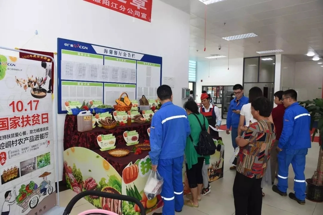 10月17日,是國家扶貧日。堅決打贏打好脫貧攻堅戰,意義重大。按照國資委和中國廣核集團黨委部署,中廣核服務集團在各大餐廳集中開展“扶貧日同吃扶貧餐”活動,宣傳推介凌云茶葉、樂業獼猴桃,推廣扶貧地區農副產品,僅扶貧當日幫助銷售農副產品30余萬元,探索消費扶貧,助力貧困地區從扶貧之路引入到致富之路。