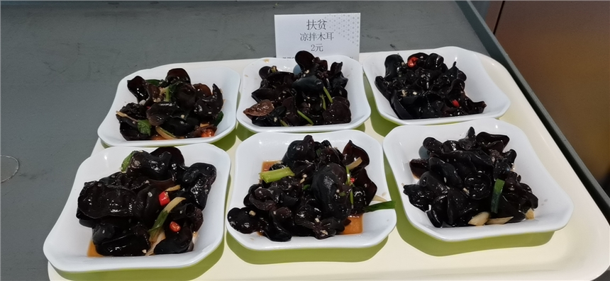 12月初,美味健康的新疆黑木耳陸續(xù)抵達(dá),餐飲公司深圳市區(qū)及大亞灣核電基地各餐廳廚師們紛紛掏出“美味秘訣菜譜”,爽口拌木耳、木耳炒雞蛋、木耳炒肉…一道道色香味俱全的“扶貧愛心菜”登上日常售飯線,一朵朵“愛心美味花兒”綻放在核電員工的餐桌上。同時(shí),各餐廳設(shè)置特色展銷臺(tái),通過“以購代捐”的方式向員工銷售河崖村健康無公害黑木耳。微薄之力,可聚星辰;奉獻(xiàn)愛心,收獲希望。“木耳味道好,爽口清香又有愛,也買點(diǎn)回家給爸媽嘗嘗!”不少員工嘗過扶貧愛心菜后還紛紛加入到愛心購買的隊(duì)伍中去,把這份美味的愛心帶回家。