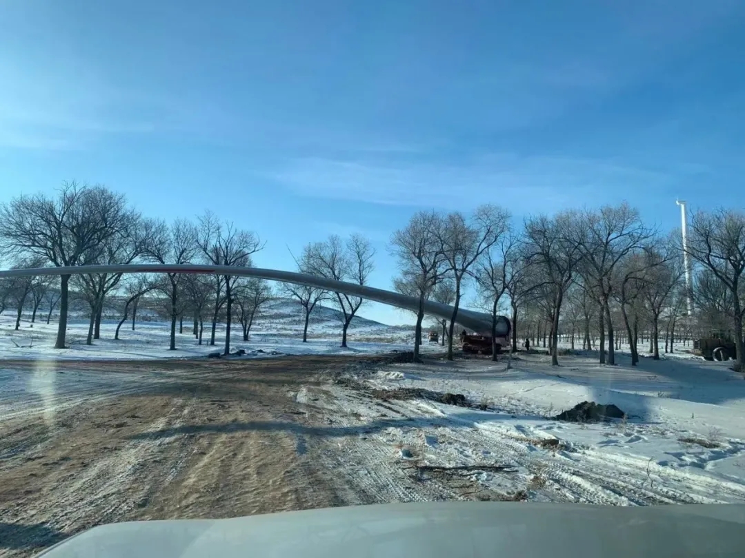 自2020625日九連城項目第一臺發電機起運,至202113日察北二期項目最后一片葉片完成卸車,歷時193個日夜,中廣核服環通公司項目人員克服了接貨地點分散,運輸距離長,路況復雜、冬季接近零下四十度的嚴寒天氣等諸多困難,提前完成了大件運輸及葉片倒運的進度任務,保證項目順利實施。