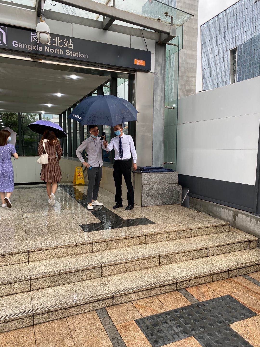 了解到這個情況,中廣核服所屬物業公司中廣核大廈管理處服務團隊立即安排人員踏著大雨前往地鐵站、公交站臺,接送沒帶傘的員工。當看到服務人員帶著公司標識的雨傘出現在站內,大家露出了喜悅的笑容,紛紛為管理處及時細致的服務豎起大拇指。服務人員多次往返大廈、地鐵站與公交站之間,一趟趟護送。濕透的衣服、鞋子是物業服務團隊為員工護航的見證。
